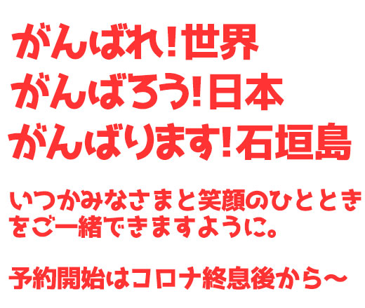その時には、八重山ブルーの美しい川平湾とともにお会いできることを、そして島の自然がみなさまの心を癒すことをスタッフ一同 心より願っております。